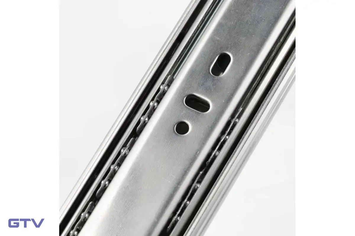 Ideálne použitie: Kuchynské zásuvky v skrinkách hĺbky 40–45 cm, kúpeľňové skrinky, komody, nočné stolíky s hlbšou zásuvkou, kancelárske kontajnery, TV stolíky so zásuvkami a všade tam, kde potrebujete spoľahlivý plnovýsuv s tichým zatváraním pre stredne hlboké zásuvky — s nosnosťou 40 kg a životnosťou 80 000 cyklov je to cenovo dostupné a overené riešenie pre každodenné používanie.