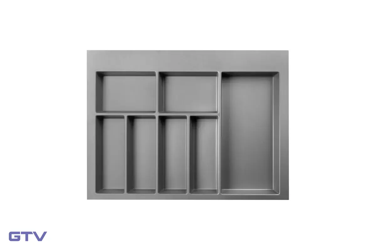 Plastový príborník (organizér) do kuchynskej zásuvky pre skrinku šírky 700 mm v antracitovej farbe. Kvalitný plast odolný voči poškriabaniu a chemikáliám. Úsporné rozdelenie priehradiek s úzkymi priečkami a malými rádiusmi pre maximálnu kapacitu. Zaoblené rohy pre ľahké čistenie. Možnosť orezania na presný rozmer zásuvky. Kompatibilný s rôznymi zásuvkovými systémami.