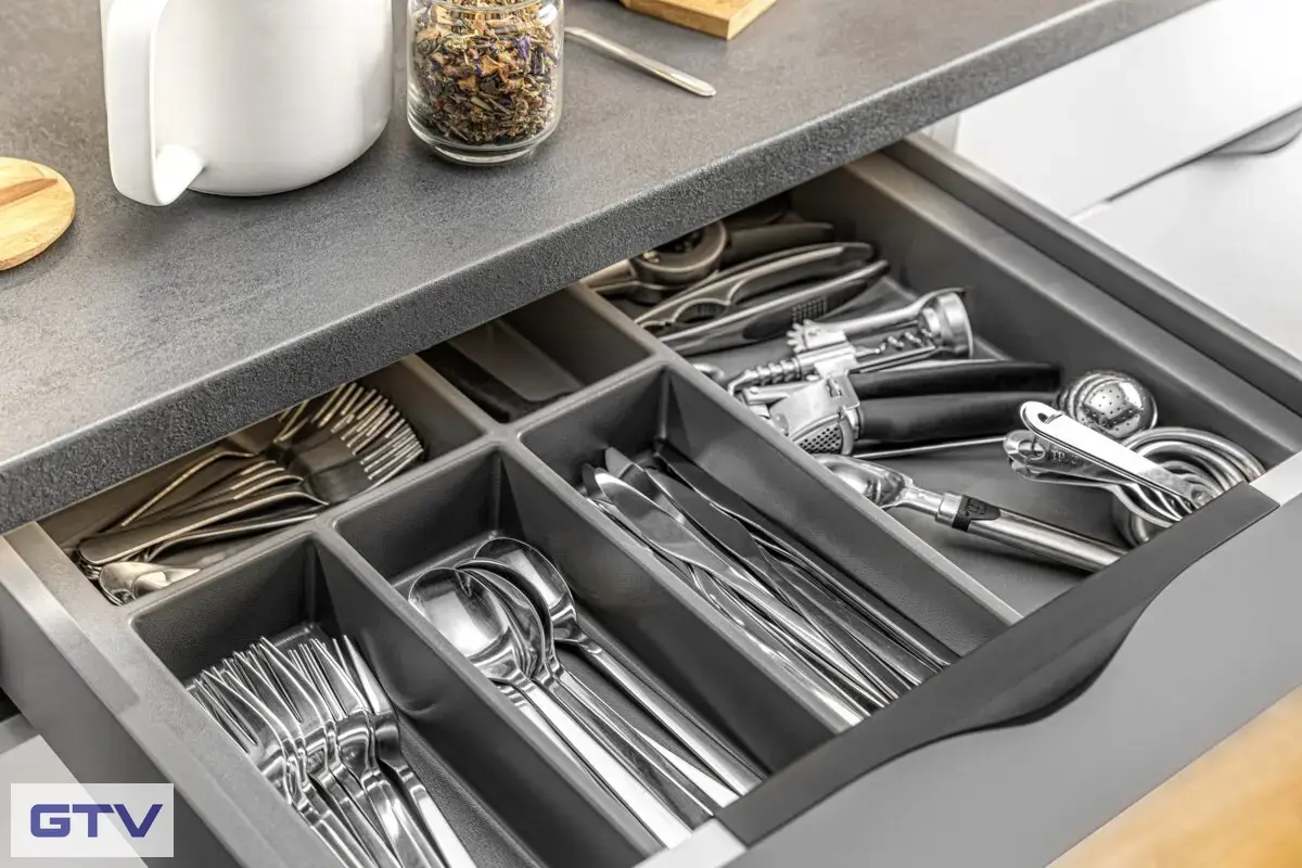 • Väčšie priehradky pre naberačky, stierky, otvárače, šľahače a ďalšie kuchynské pomôcky