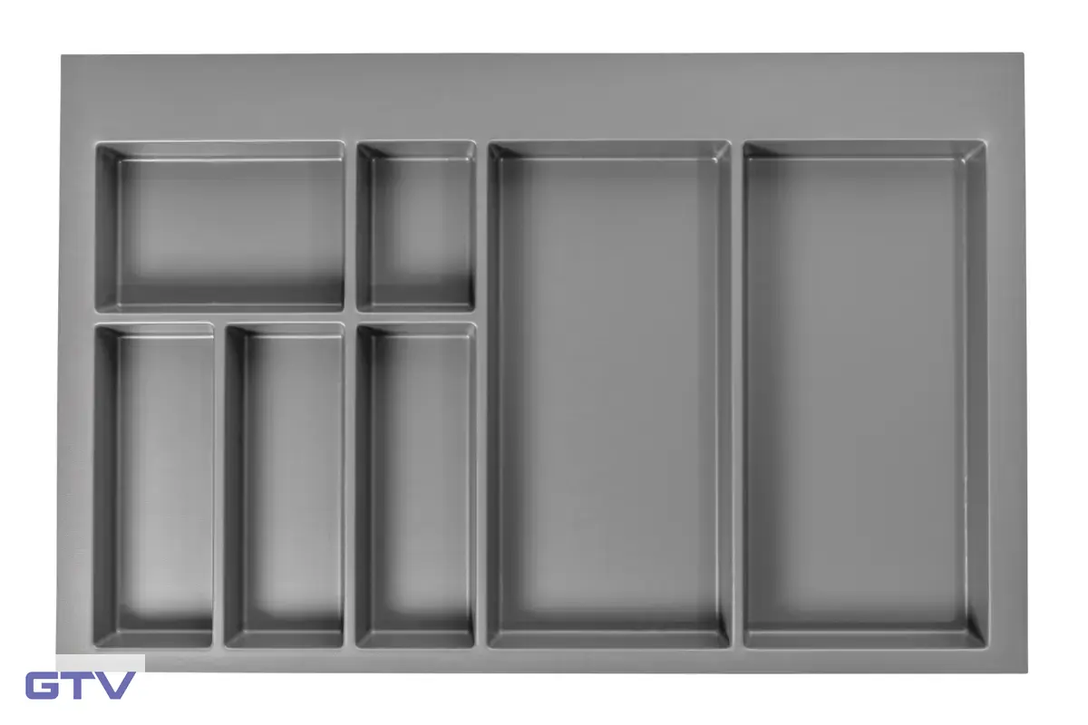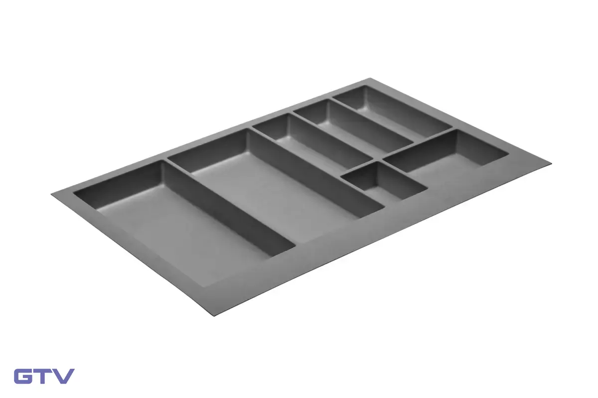 Plastový príborník (organizér) do kuchynskej zásuvky pre skrinku šírky 800 mm v antracitovej farbe. Kvalitný plast odolný voči poškriabaniu a chemikáliám. Úsporné rozdelenie priehradiek s úzkymi priečkami a malými rádiusmi pre maximálnu kapacitu. Zaoblené rohy pre ľahké čistenie. Možnosť orezania na presný rozmer zásuvky. Kompatibilný s rôznymi zásuvkovými systémami.
