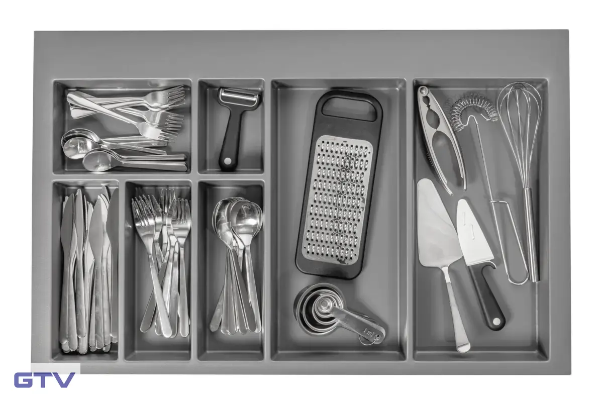 • Väčšie priehradky pre naberačky, stierky, otvárače, šľahače, servírovacie príbory a ďalšie pomôcky