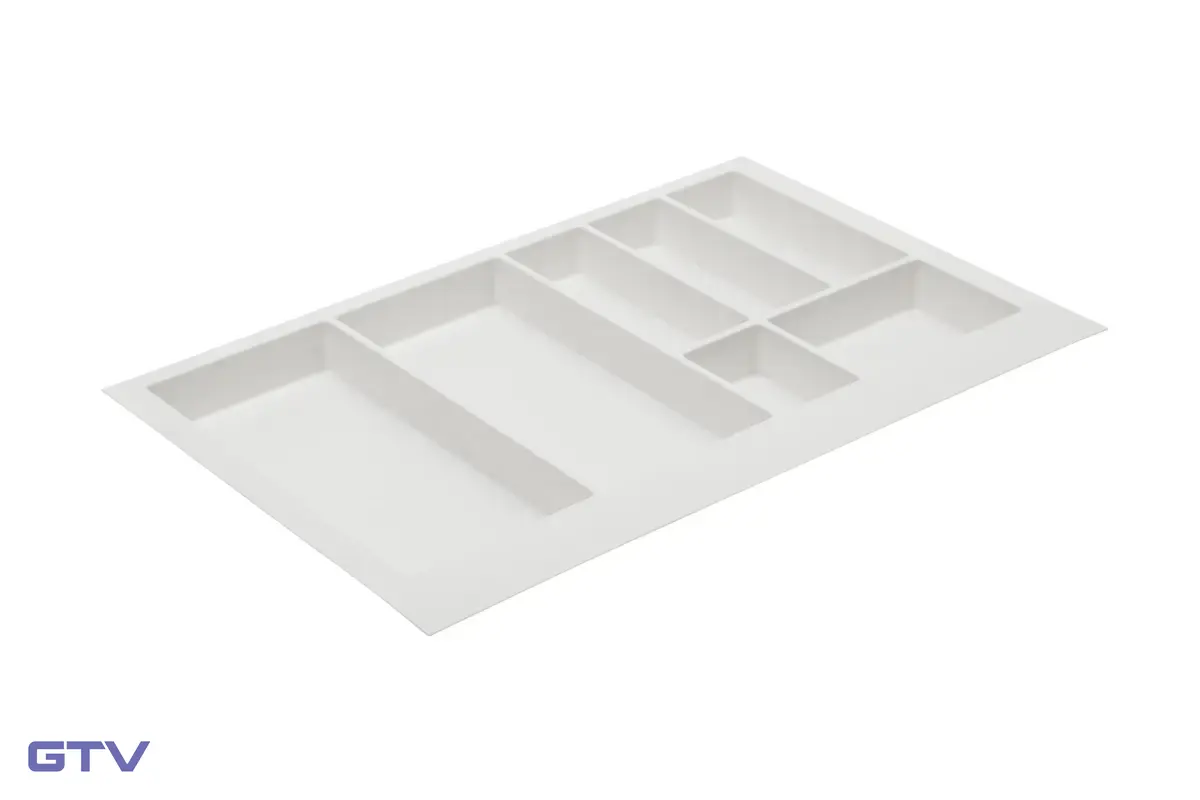 Ideálne použitie: Široké kuchynské zásuvky v skrinkách šírky 80 cm, hlavné príborové zásuvky vo veľkých kuchynských linkách, zásuvky na kompletné kuchynské vybavenie vrátane servírovacích príborov a väčšieho náčinia a všade tam, kde potrebujete priestranný a prehľadný organizér — príborník v bielom prevedení s šírkou 800 mm je ideálne riešenie pre domácnosti s veľkou sadou príborov, viacčlennú rodinu alebo kuchyne, kde sa pravidelne varí a servíruje pre viac osôb.