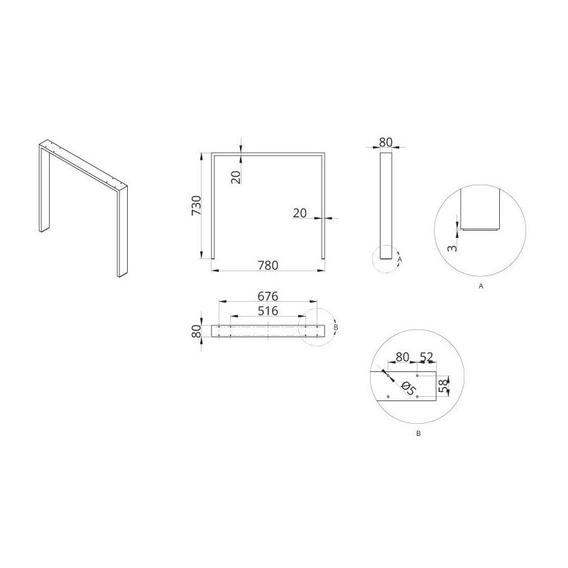 Stolové podnože SA973A 80×20 mm D780×H730, biela (2ks v sade)