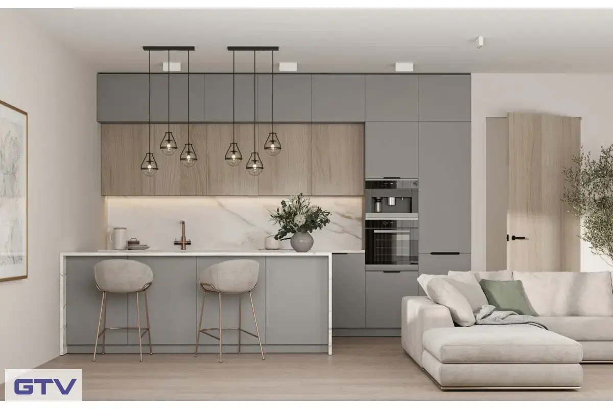 - Na spodnú hranu horných skriniek — úchop zdola, úchytka nie je viditeľná z bežného uhla pohľadu