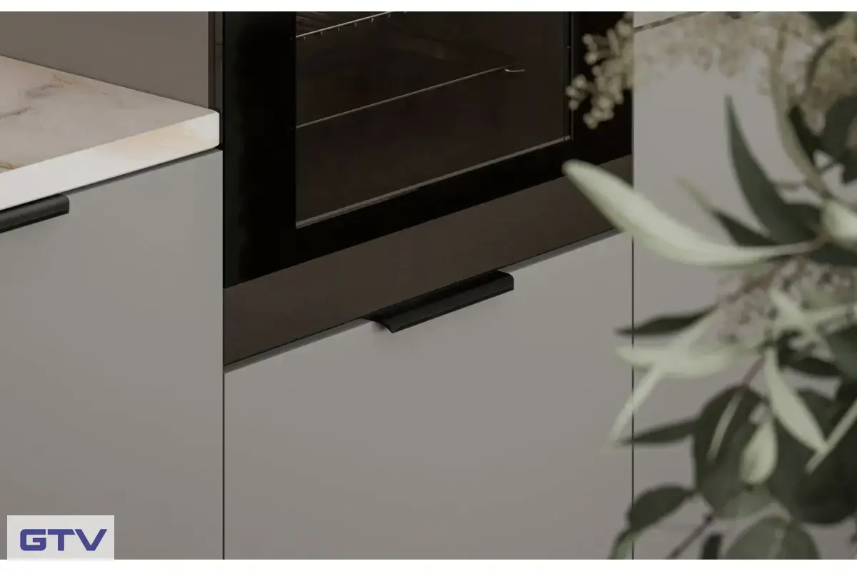 - Efekt integrácie — profil jemne splýva s čelom nábytku a vytvára dojem jednoliateho celku